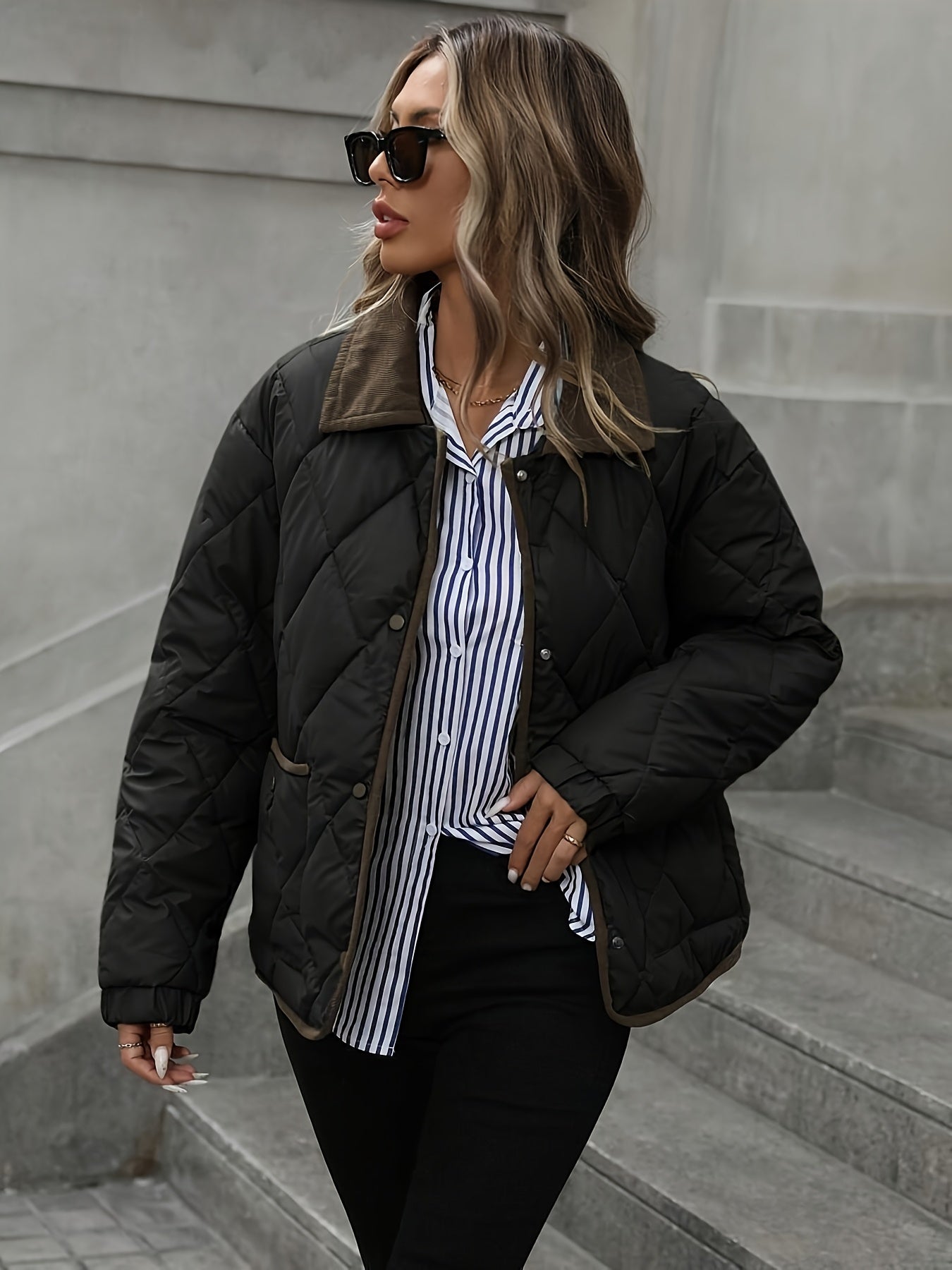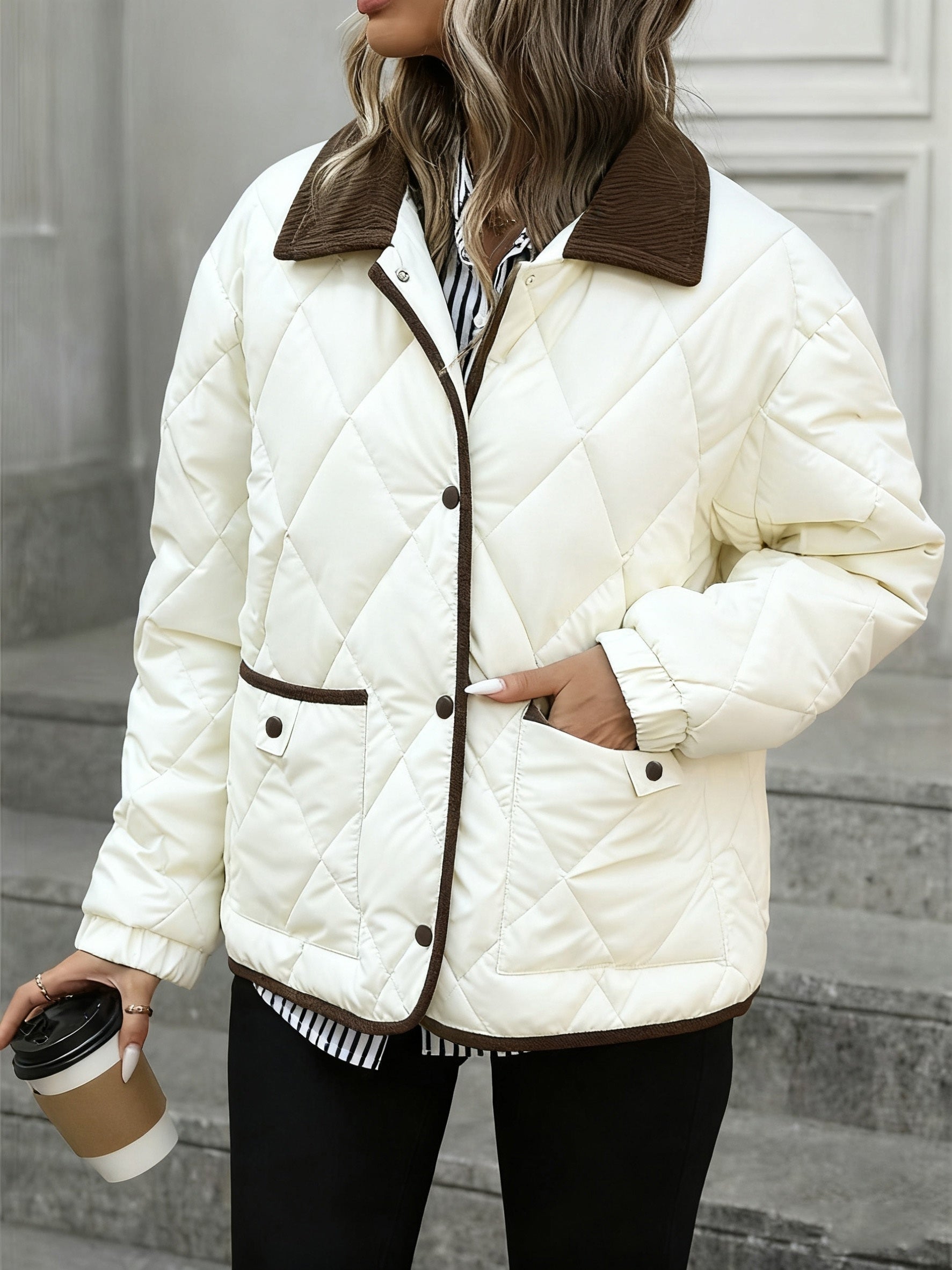 - Gestructureerde gewatteerde afwerking: Het gestikte ontwerp voegt textuur en vorm toe, waardoor dit casual jack een verfijnde, moderne uitstraling krijgt.