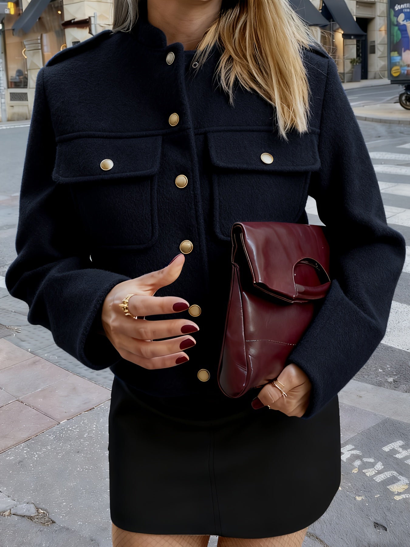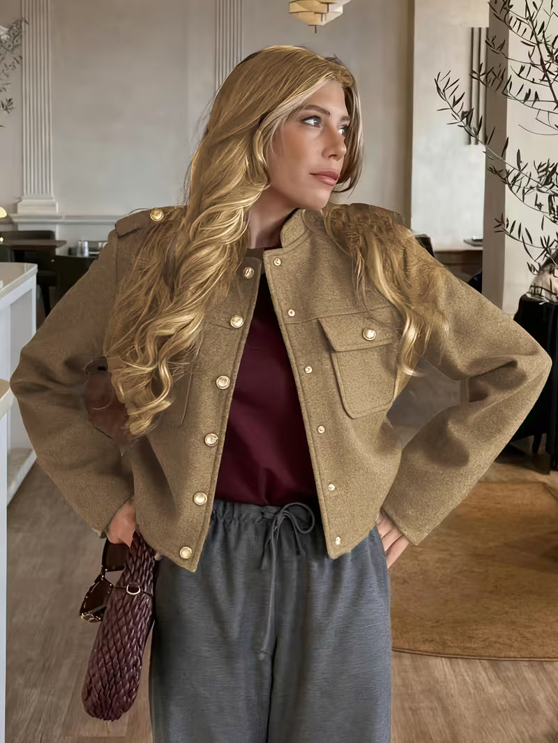 Klassieke knoopsluiting: De enkelrijige knopen aan de voorkant zorgen voor structuur en maken de jas eenvoudig en veelzijdig te stylen.