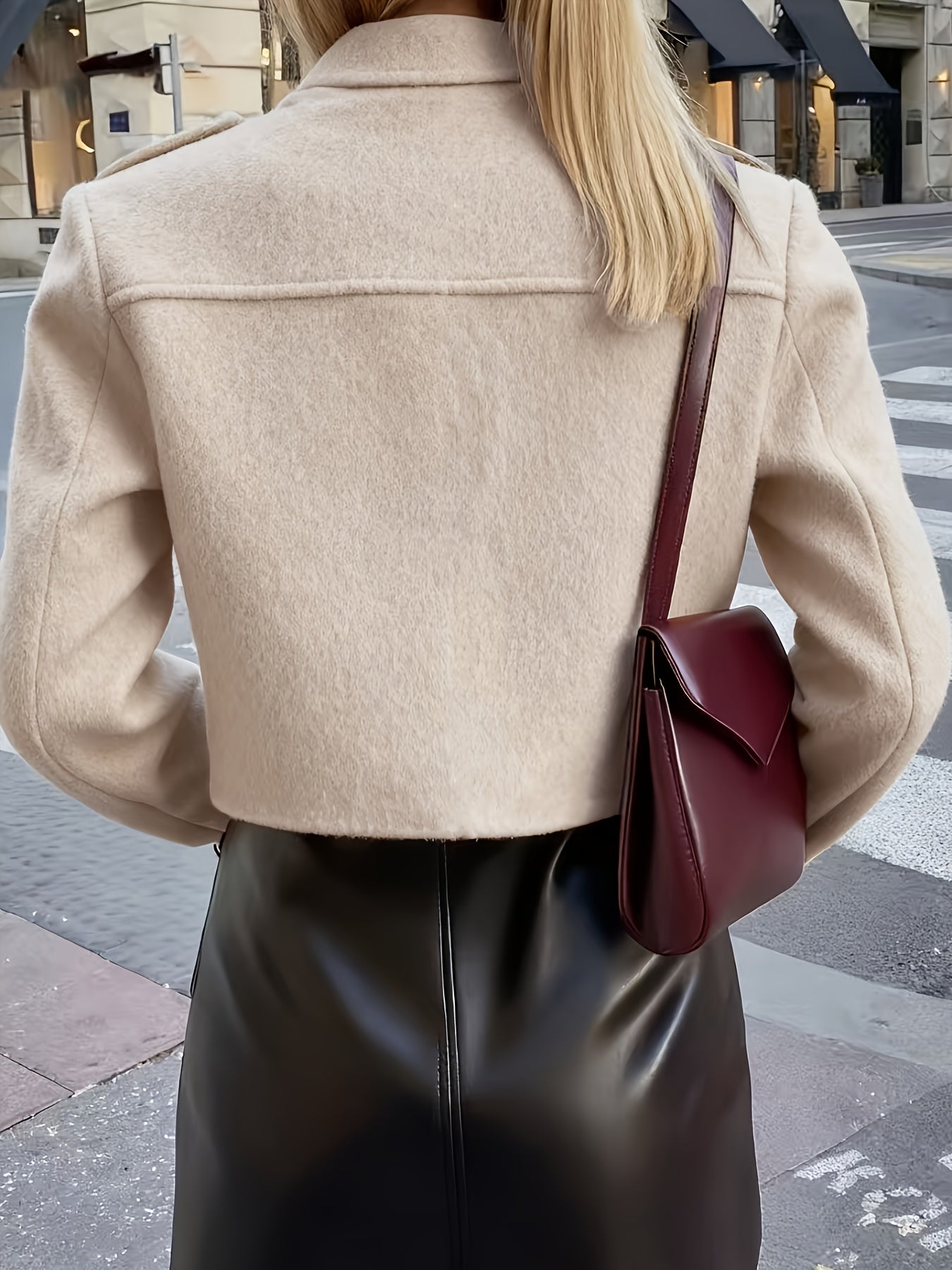 - Tijdloos, effen ontwerp: De minimalistische afwerking zorgt ervoor dat de jas gemakkelijk te combineren is met jurken, broeken of jeans.