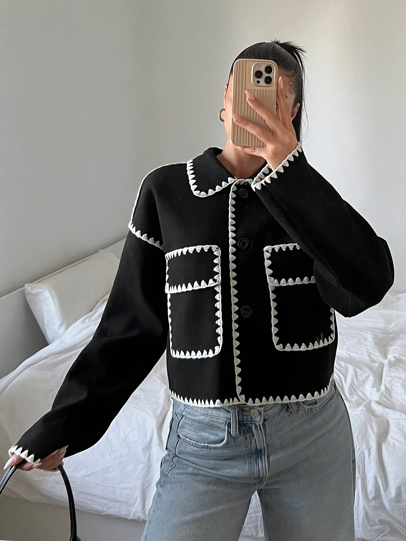 - Klassieke reverskraag: De gestructureerde revers omlijst de halslijn en geeft zowel casual als geklede outfits een elegante uitstraling.