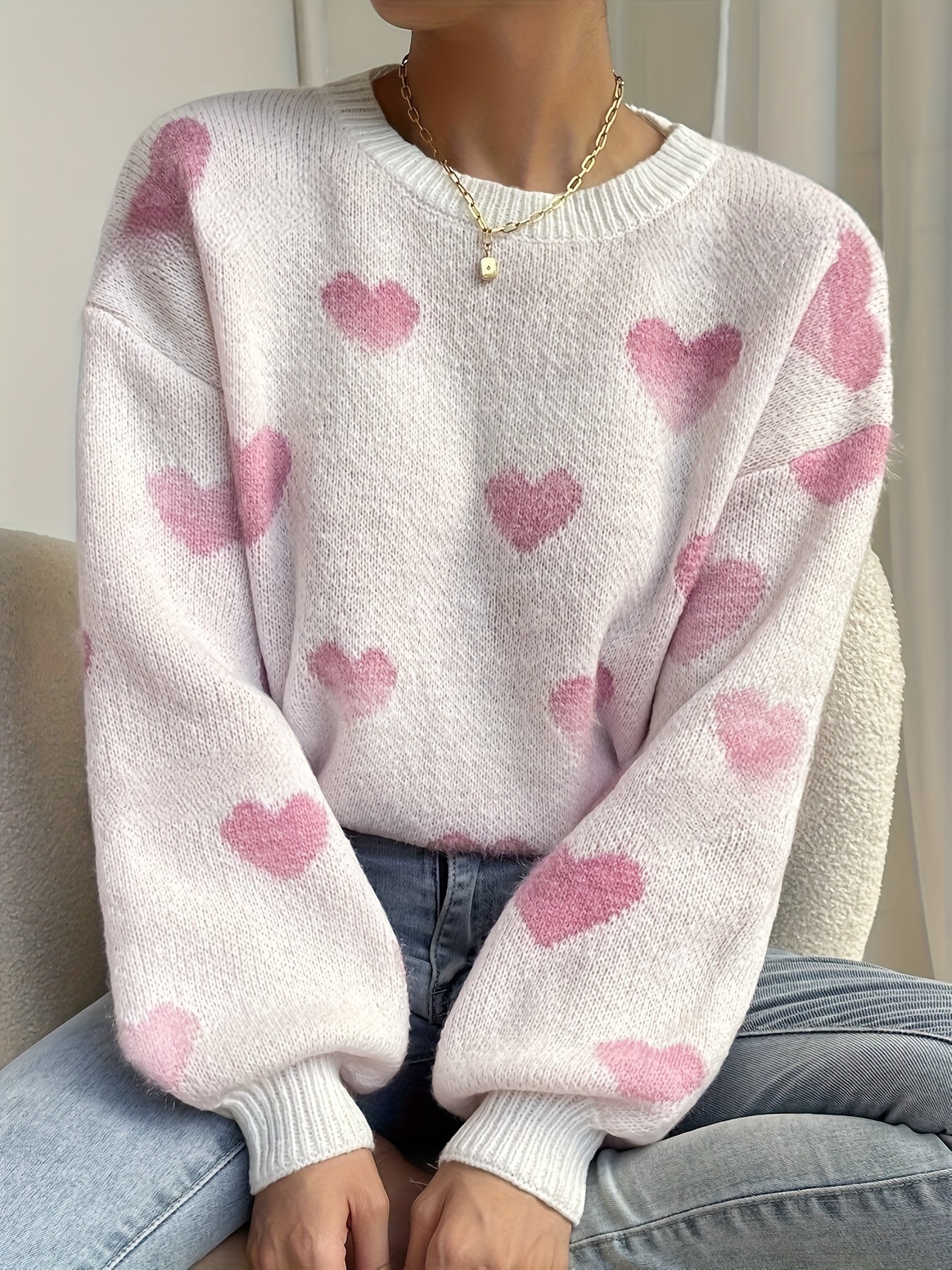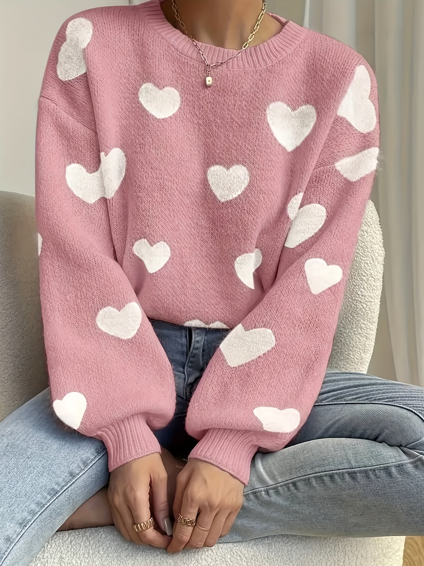 Charmant hartjespatroon: Subtiele hartjesprints geven deze trui persoonlijkheid en laten hem op een verfijnde manier opvallen.